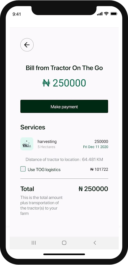 You earn a robust commission on every farmer you onboard on the TOG app. Take advantage of your knowledge of your community farmers, and earn with every transaction you help broker.